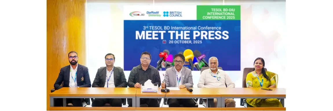 All these were informed in a “Meet the Press” held today at Professor Aminul Islam Hall of the Daffodil International University, Birulia, Savar Dhaka. Professor Dr. M R Kabir, Vice Chancellor, Daffodil International University and Professor Dr. Sayeedur Rahman, Institute of Modern Languages, University of Dhaka, Convenor, TESOLBD-DIU International Conference 2025 and Advisor, TESOL Society of Bangladesh read out the written papers at the “Meet the Press”. Dr. Mohammed Nadir Bin Ali, Registrar, Daffodil International University graced the event with his presence. The Meet the Press was also addressed by Professor Dr. Liza Sharmin, Dean FHSS, DIU